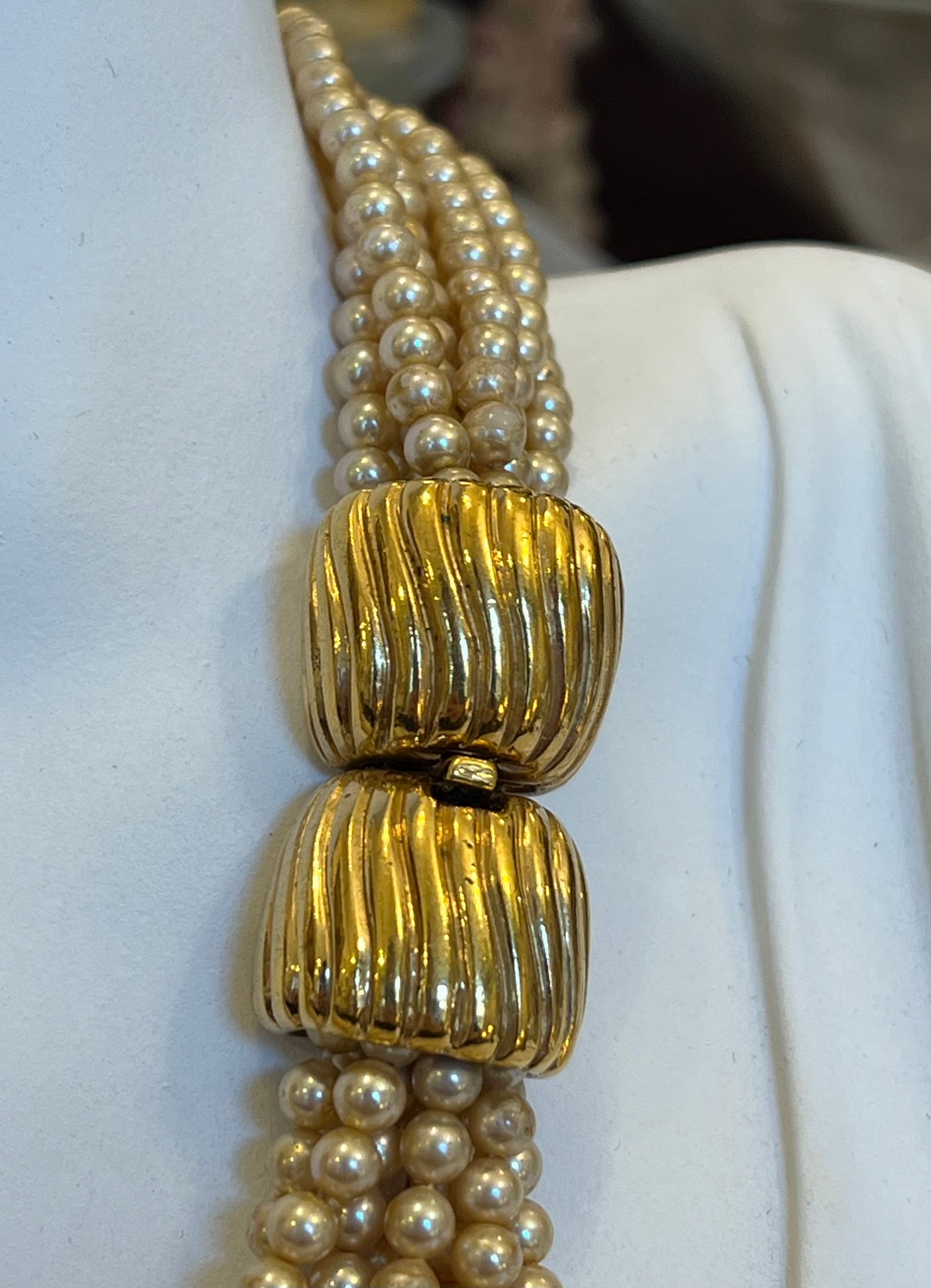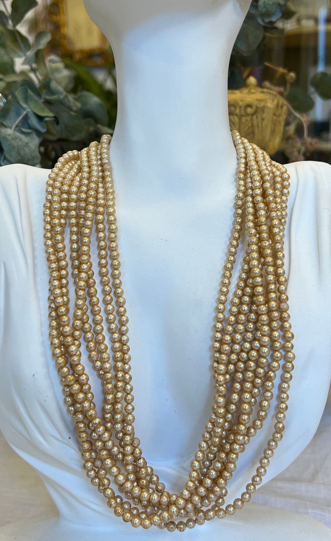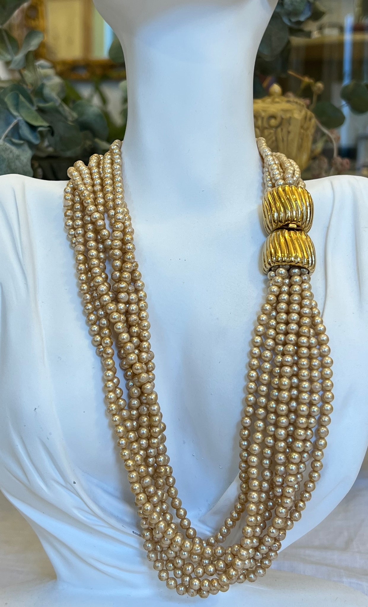 Colier statement vintage, 8 șiraguri de perle, cca. anii ‘70