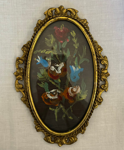 • Pictură vintage florală cu ramă din bronz, cca. anii ‘40