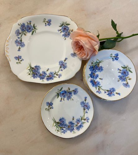 • Set de tort vintage, Royal Adderley, "Cornflower", cca. anii ‘70
